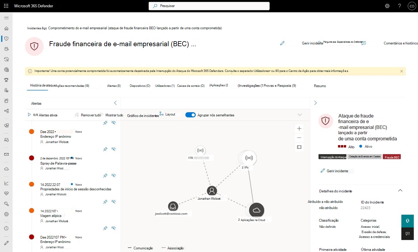Ataque de fraude financeira bec lançado a partir de uma conta comprometida (interrupção do ataque)