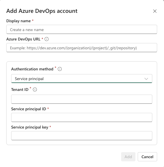 Este artigo apresenta passos manuais sobre como configurar um principal de serviço para integrar o Microsoft Fabric com o Azure DevOps usando a identidade do utilizador. Para saber como está a funcionar a integração do principal de serviço do Azure DevOps, consulte o nosso documento - Automatizar a integração git com um principal de serviço no Azure DevOps.