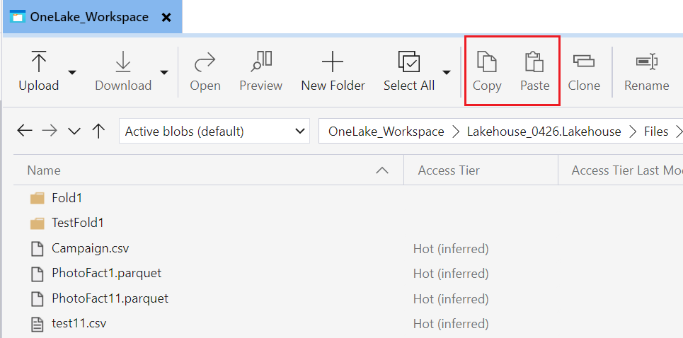 Para copiar dados entre locais, selecione as pastas que deseja copiar e selecione Copiar, navegue até o local de destino e selecione Colar.