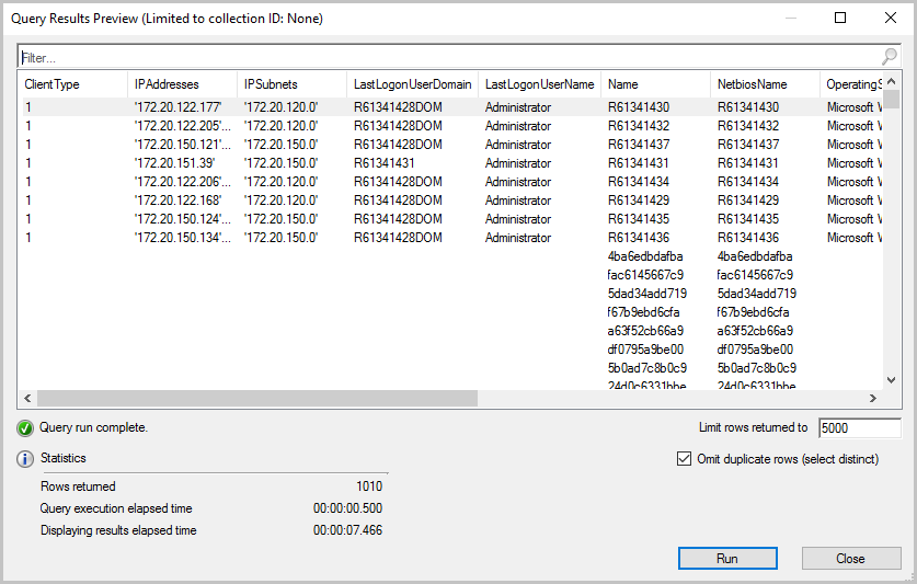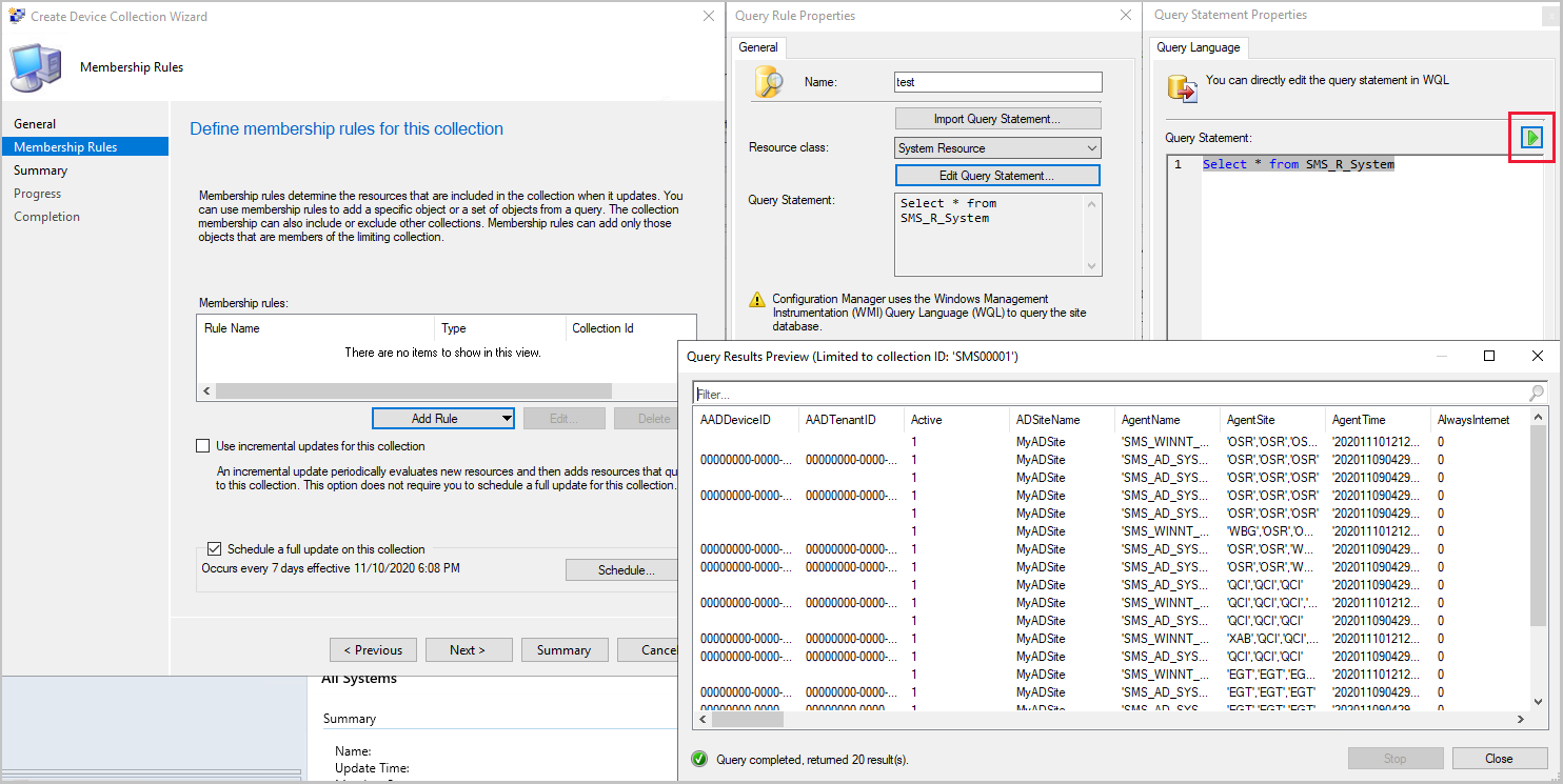 - A partir de Configuração Manager 2010, pode visualizar os resultados quando estiver a criar ou editar uma consulta para a adesão à recolha. Para mais informações, consulte a secção de consultas de recolha de pré-visualização.