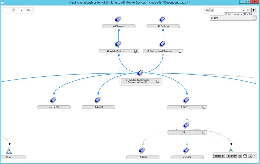 Por exemplo, se selecionar a coleção All Systems para visualizar as suas relações, o nó de Dependência será 0, uma vez que não tem coleções de pais.