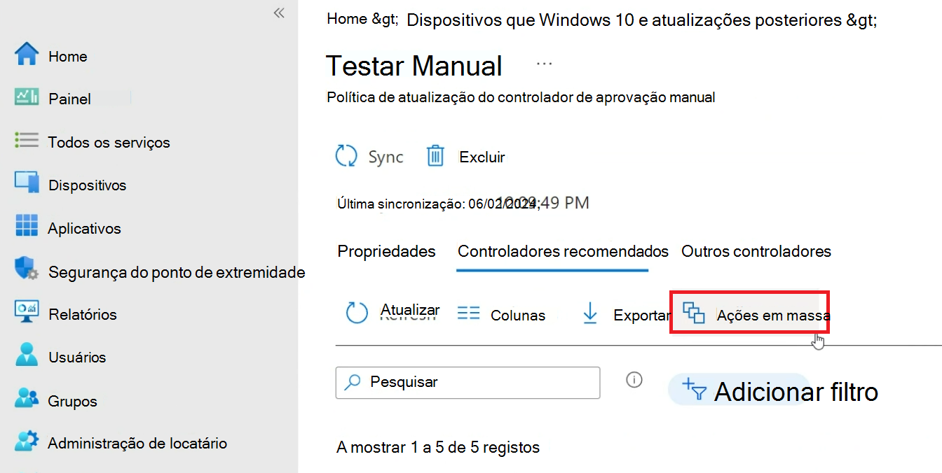 As atualizações de controladores em massa permitem ao utilizador aprovar, colocar em pausa ou recusar vários controladores para dispositivos de uma só vez.
