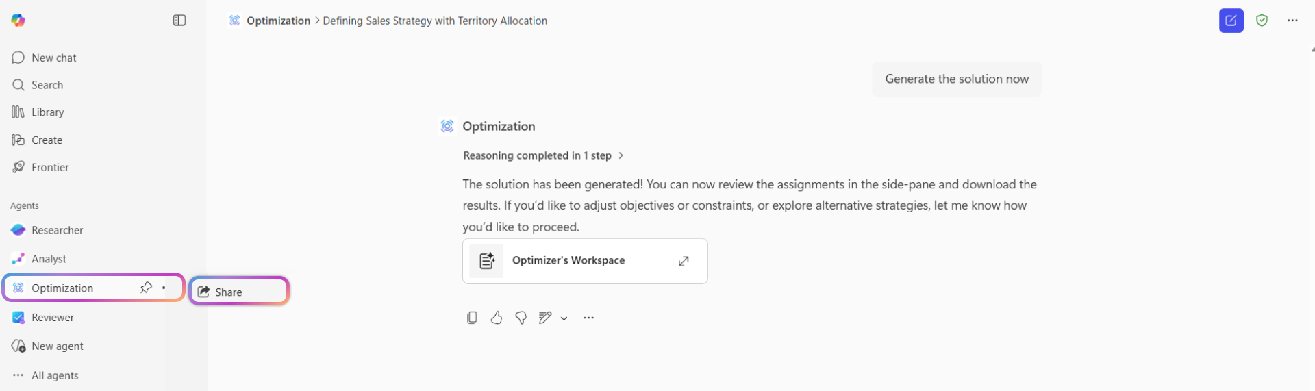 O modelo do Agente de otimização para Microsoft 365 Copilot ajuda-o a modelar e a resolver problemas de otimização de negócios específicos da sua organização. Utilize o agente para tomar decisões ideais para cenários como organizar equipas, atribuir trabalho ou planear estratégias de vendas.