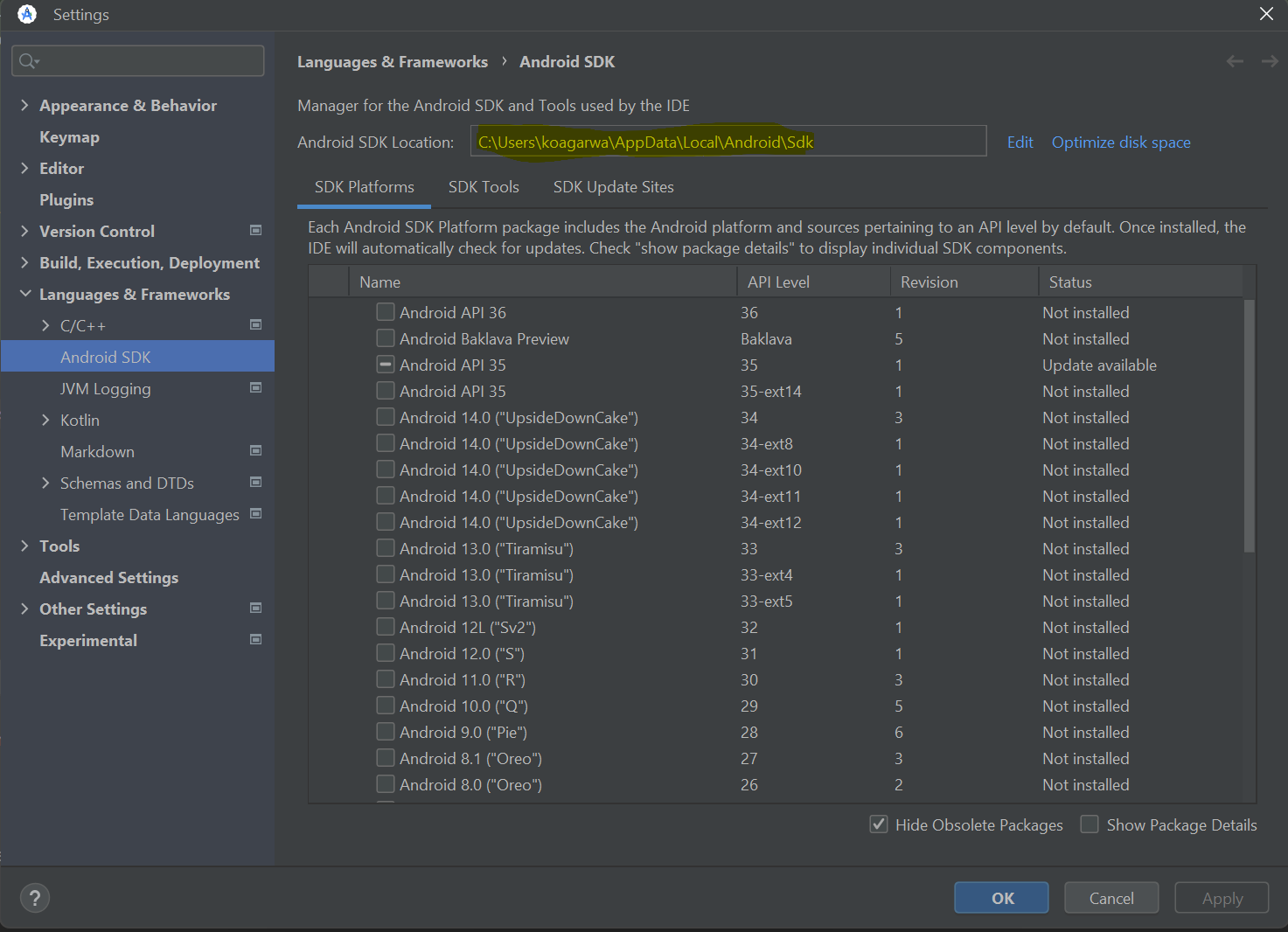 - Aceda a Ferramentas>Gestor de SDK>Android Localização de SDK para localizar o seu caminho SDK.