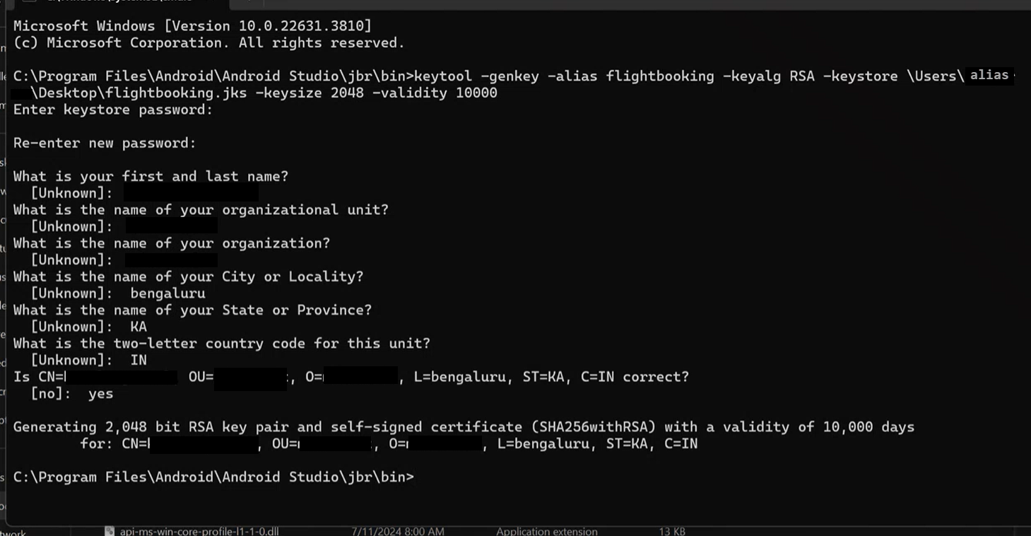 keytool -genkey -alias powerappswrap -keyalg RSA -keystore powerappswrap.jks -keysize 2048 -validity 10000