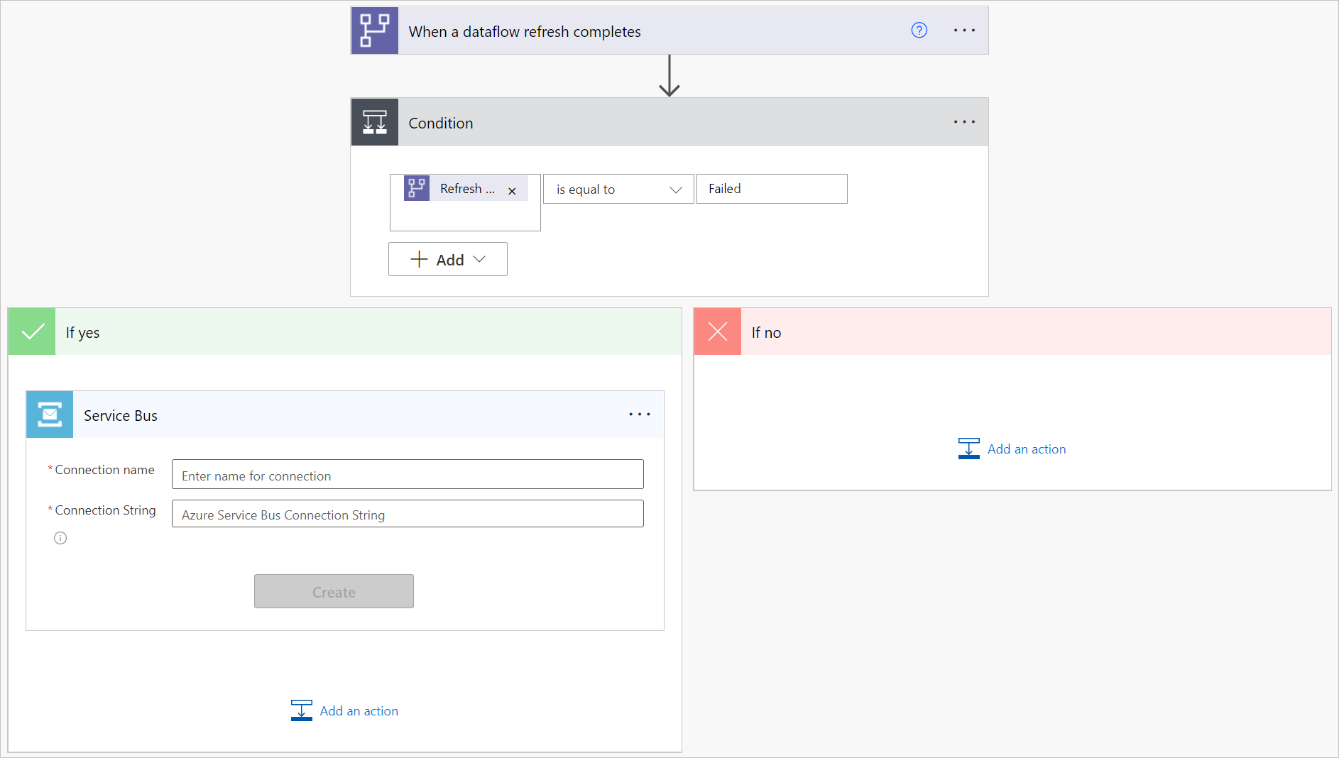 Quando a atualização do fluxo de dados terminar ou estiver a demorar mais do que o esperado, pode querer que a sua equipa de suporte investigue. Com este tutorial, pode abrir automaticamente um ticket de suporte, criar uma mensagem numa fila ou Service Bus, ou adicionar um item ao Azure DevOps para notificar a sua equipa de suporte.