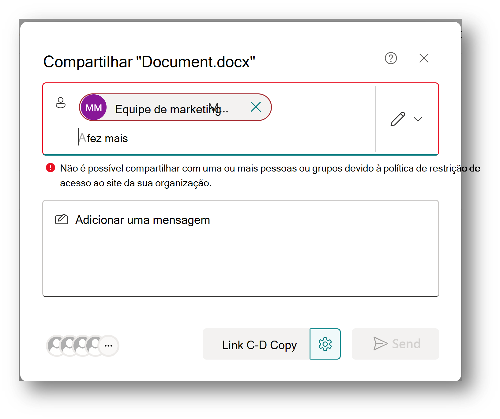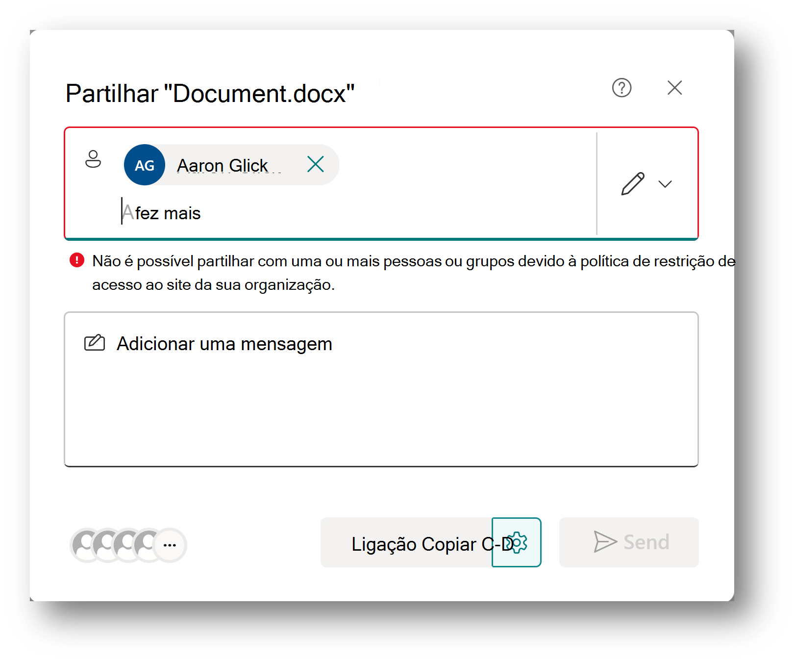 Assim que a restrição de partilha for aplicada, a partilha é bloqueada para utilizadores que não sejam membros do grupo Controle de Acesso Restrito.