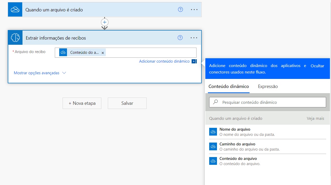 Criar um fluxo de trabalho automatizado usando o processamento de recibos