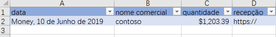 Opcionalmente, você pode formatar as colunas Data e Valor como formatos de número de data e moeda, respectivamente.