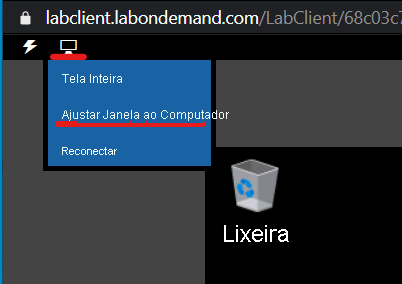 Para ancorar o ambiente de laboratório para que preencha a janela, selecione o ícone do PC na parte superior e, em seguida, selecione Ajustar Janela ao Computador.