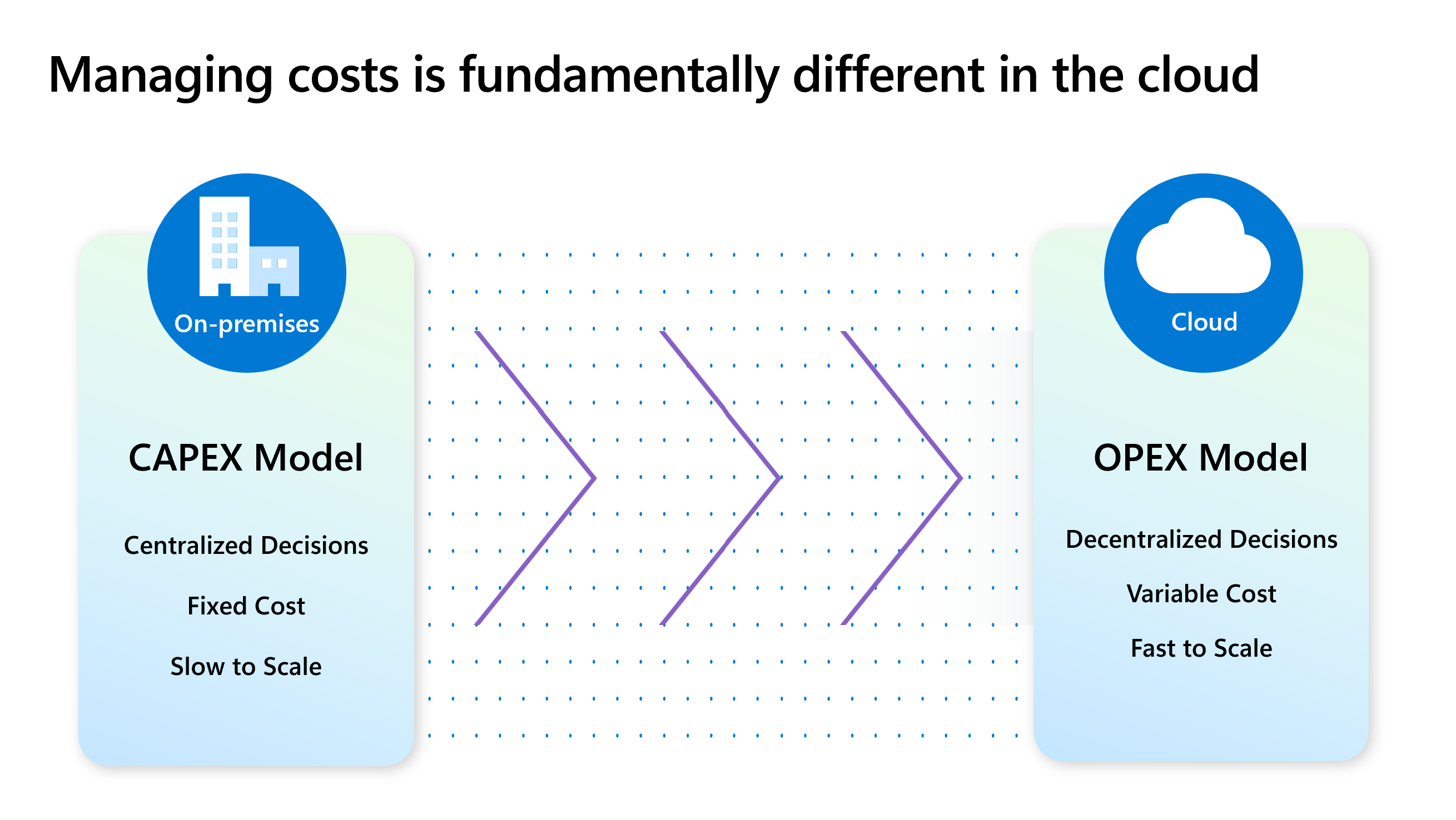 Para organizações que fazem a transição de ambientes locais para ambientes de nuvem ou gerenciam cargas de trabalho atuais na nuvem, mudar de um modelo tradicional de Despesas de Capital (CapEx) para um modelo de Despesas Operacionais (OpEx) mais flexível significa uma grande transformação. Esta alteração tem efeitos substanciais tanto na vertente financeira como operacional da empresa.