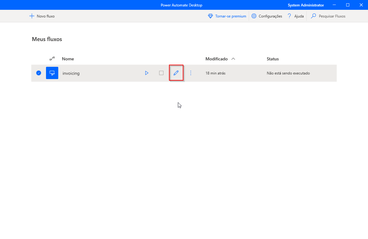 As variáveis permitem que as informações mudem, ou variem, de acordo com cada execução do seu fluxo. Se estiver usando um fluxo para qualquer tipo de entrada de dados, você precisará de variáveis para definir os campos que precisam de informações. As variáveis de entrada incluem informações inseridas no fluxo antes ou durante a execução. As variáveis de saída são resultados que o fluxo retorna após a execução. O Power Automate para desktop fornece o recurso para receber valores de entrada de fluxos da nuvem e retornar valores usando variáveis de saída. Como resultado, suas automações podem ser perfeitamente integradas. Para definir as variáveis de entrada, acesse o aplicativo Power Automate para desktop e, em seguida, abra o designer editando um fluxo da área de trabalho.