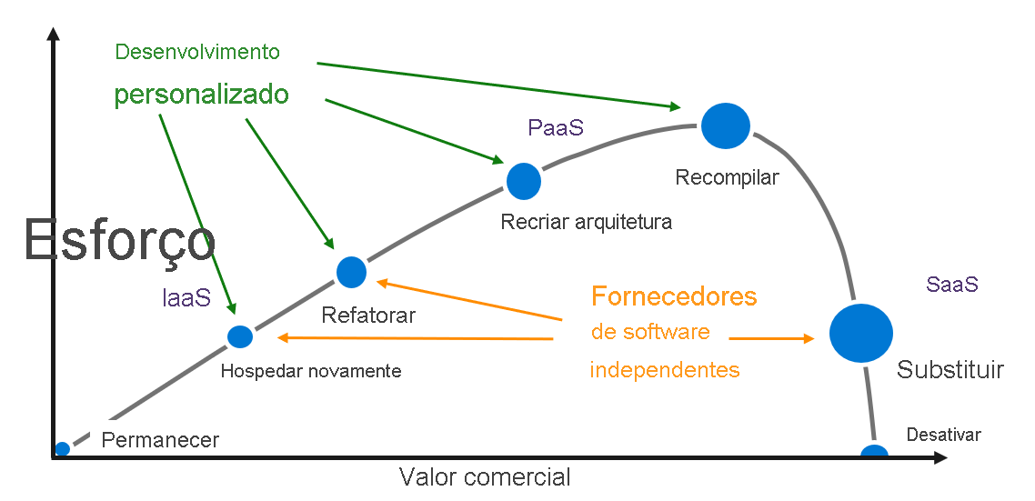 O gráfico abaixo mostra a quantidade de esforço que cada termo requer em comparação com o valor que a empresa ganha com a migração.