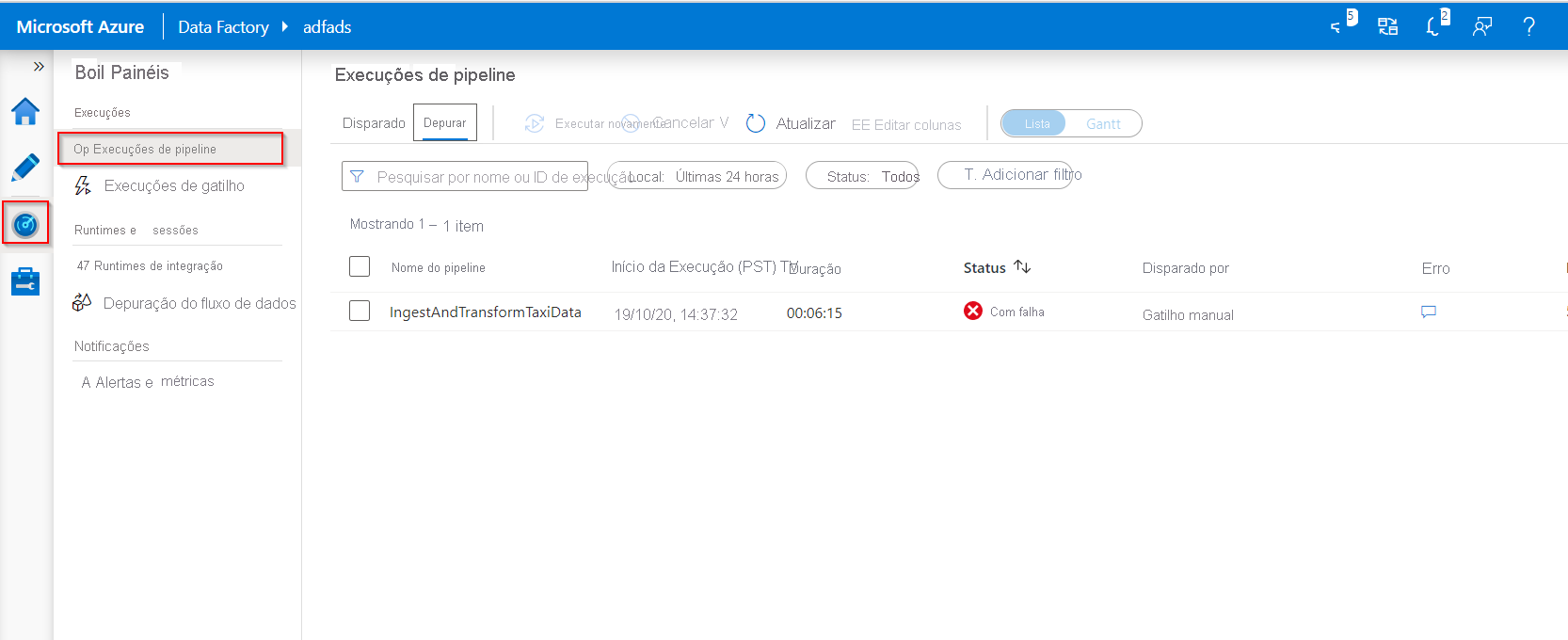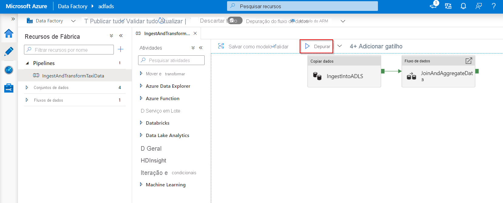 Depurar os pipelines da fábrica de dados