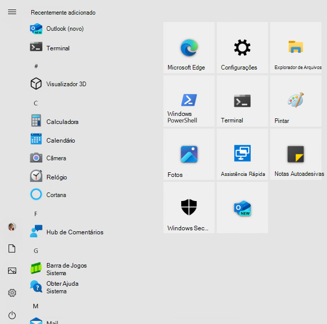 - Instalar todas as aplicações e serviços que o esquema Iniciar deve apresentar