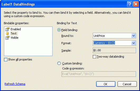 Figure 5: Bind the Label's Text Property to the UnitPrice Data Field (Click to view full-size image)