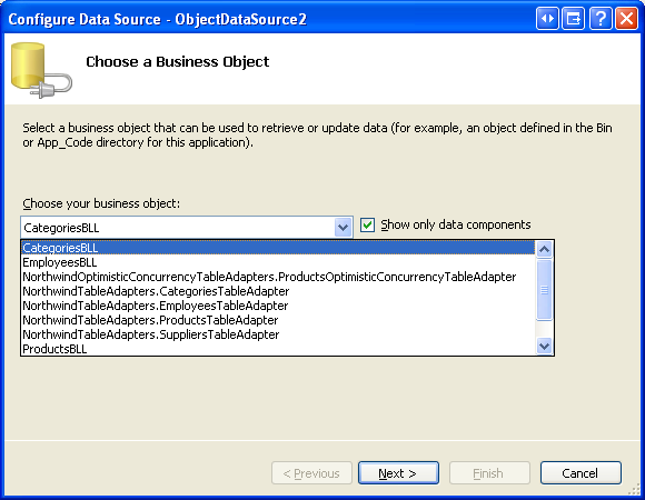 Configure the ObjectDataSource to Use the CategoriesBLL Class