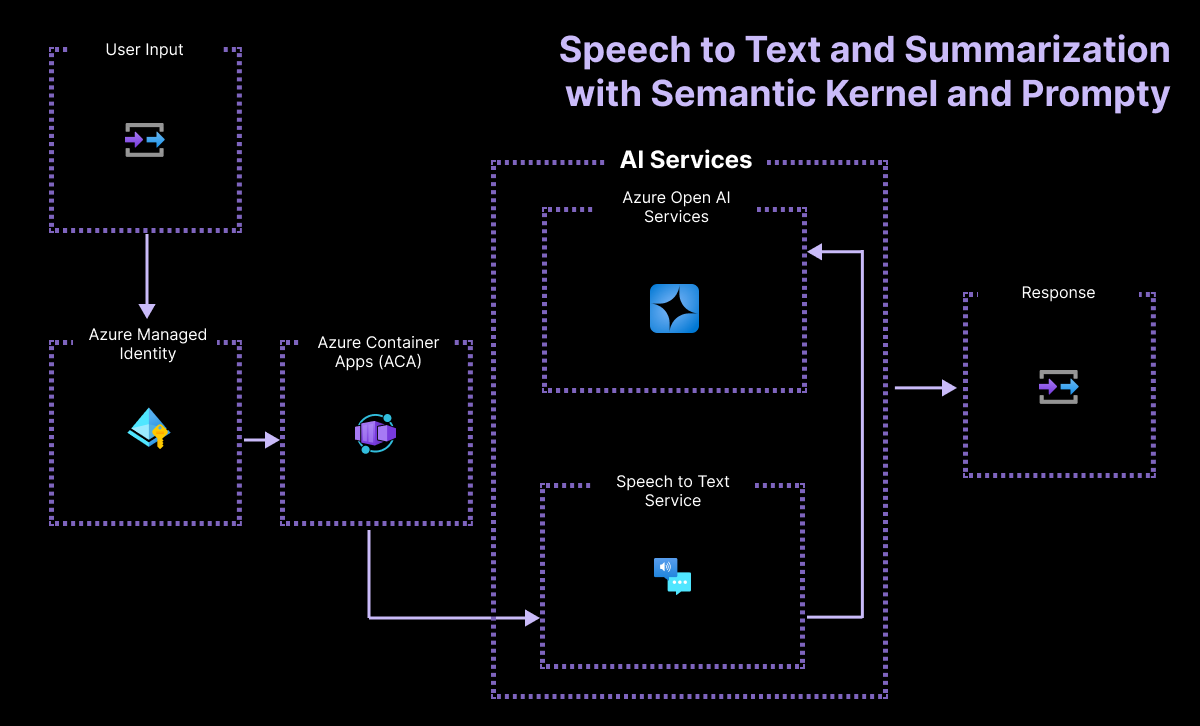 | Azure Container Apps | Speech to Text Summarization Azure OpenAI |