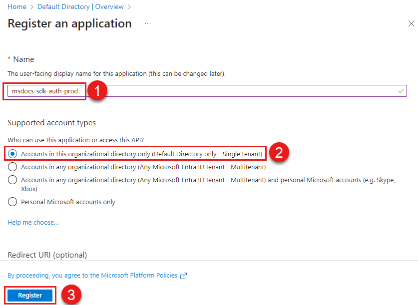 Apps hosted outside of Azure (for example on-premises or at a third-party data center) should use an application service principal to authenticate to Azure when accessing Azure resources. Application service principal objects are created using the app registration process in Azure. Creating a new application service principal generates a client ID and client secret for your app. You store the client ID, client secret, and your tenant ID in environment variables to be used by the Azure SDK for Python to authenticate your app to Azure at runtime.