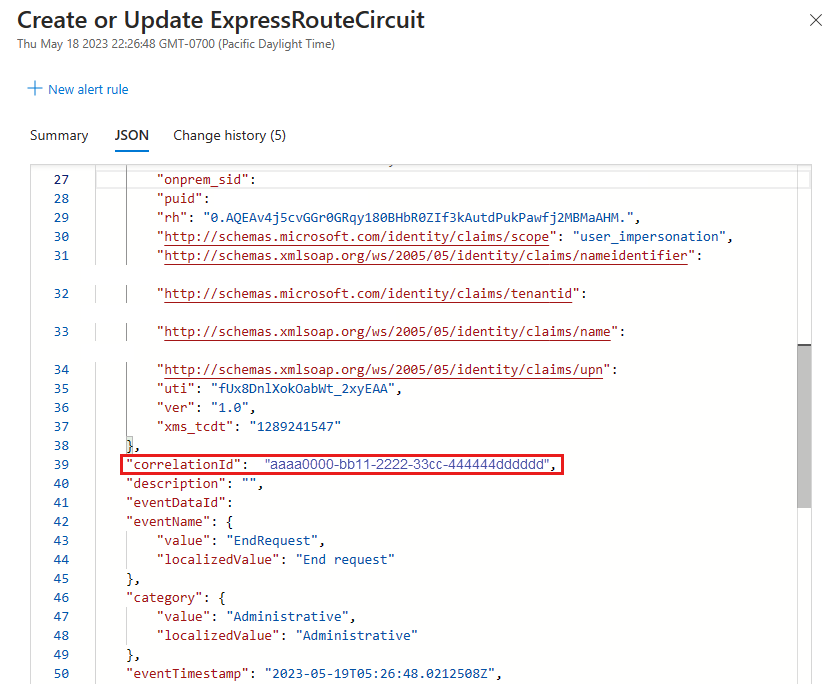 The Azure Resource Manager Activity Log provides information about resource modifications and helps trace request flows between services. Each operation has a unique Correlation ID that aids in troubleshooting issues by correlating them with other signals across multiple services. This guide shows you how to obtain the correlation ID from the Activity Log for an ExpressRoute resource, such as a circuit, gateway, connection, or peering.