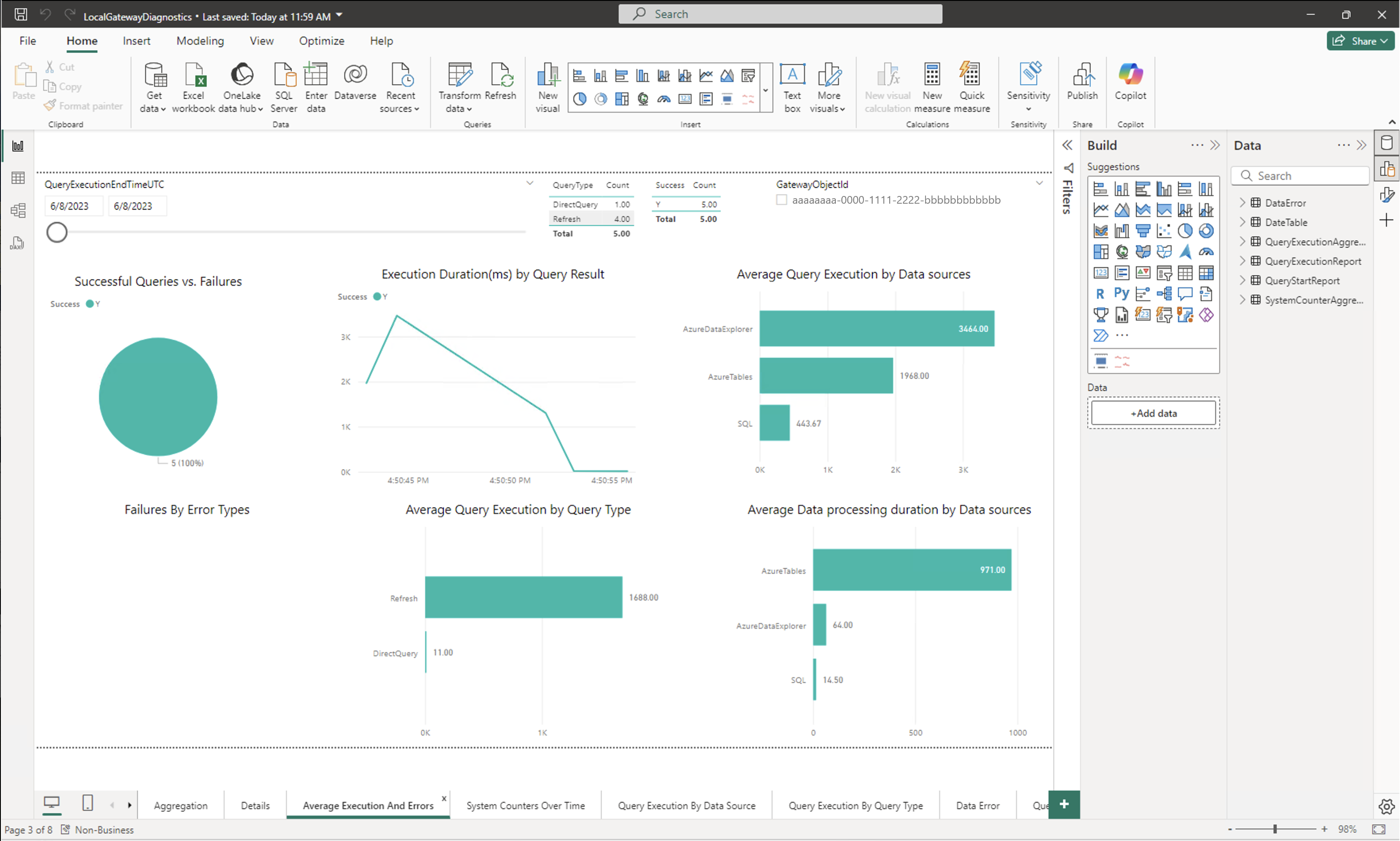 To monitor performance, gateway admins traditionally depended on manually monitoring performance counters through the Windows Performance Monitor tool. We now offer extra query logging and a Gateway Performance PBI template file to visualize the results. This feature provides new insights into gateway usage. You can use it to troubleshoot slow-performing queries.