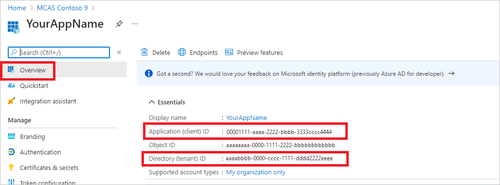 On your application page, go to Overview and copy the following information: