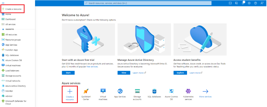 Select the See more in Marketplace link on the top right to access Marketplace within Azure portal.