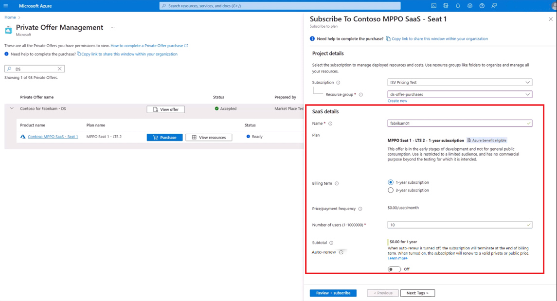 Find the private offer with the VMSR you want to buy, then select Purchase.