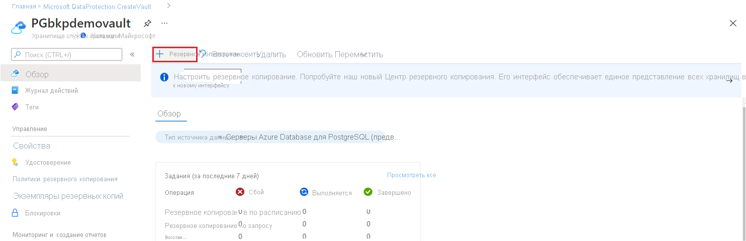 Перейдите в хранилище резервных копий, выберите хранилище и выберите "Резервное копирование".