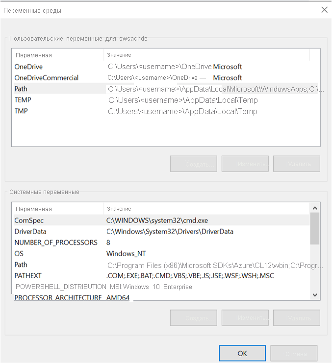 Отображаются переменные среды по умолчанию.