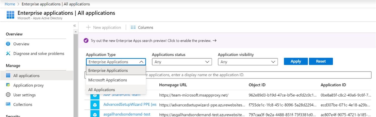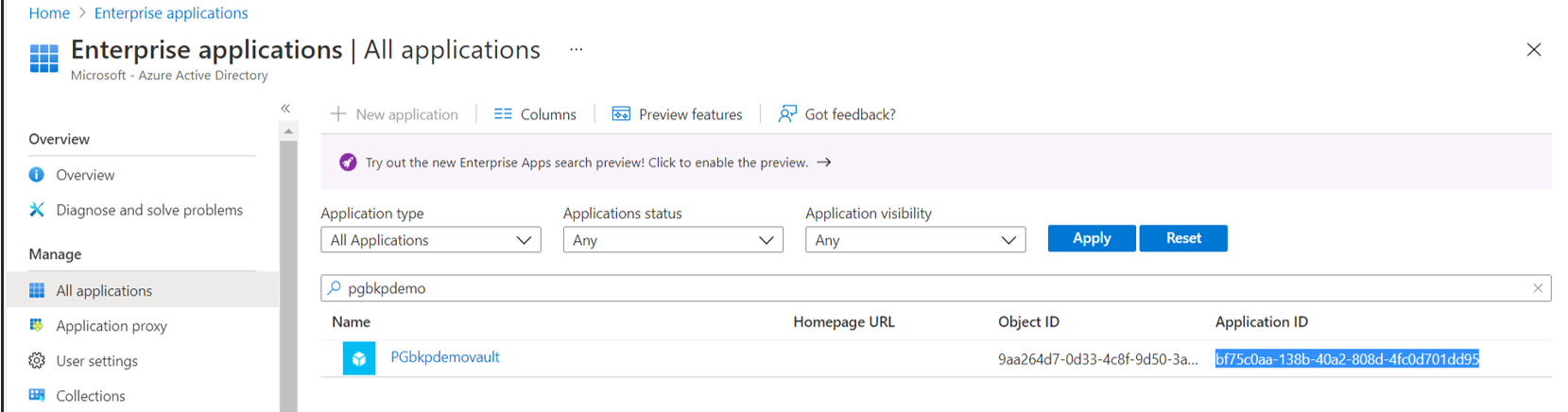 Замените значение параметра assignee идентификатором приложения, который связан с управляемым удостоверением хранилища. Для значения scope параметра обратитесь к конкретному контейнеру. Чтобы получить идентификатор приложения управляемого удостоверения хранилища, выберите все приложения в разделе "Тип приложения". Найдите имя хранилища и скопируйте значение идентификатора приложения .
