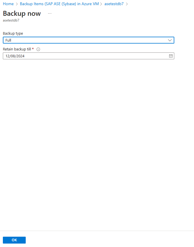 Чтобы выполнить резервное копирование по запросу для базы данных SAP ASE, выполните следующие действия.