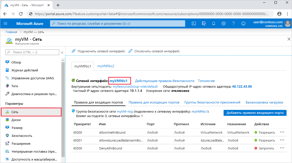 Если вы знаете имя виртуальной машины, но не имя сетевого интерфейса, используйте следующие команды, чтобы вернуть идентификатор всех сетевых интерфейсов, подключенных к виртуальной машине: