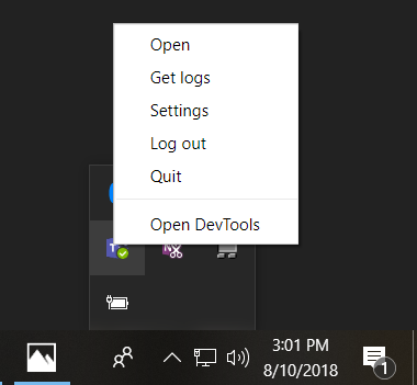 В Windows: откройте область рабочего стола и щелкните правой кнопкой мыши, чтобы выбрать значок Microsoft Teams. Выберите Открыть средства разработки: