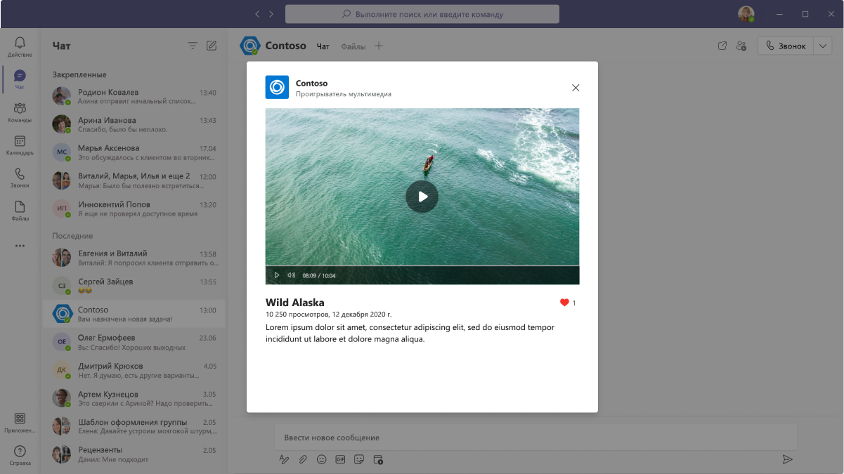 Внедрение мультимедийного содержимого в диалоговое окно для целенаправленного просмотра.