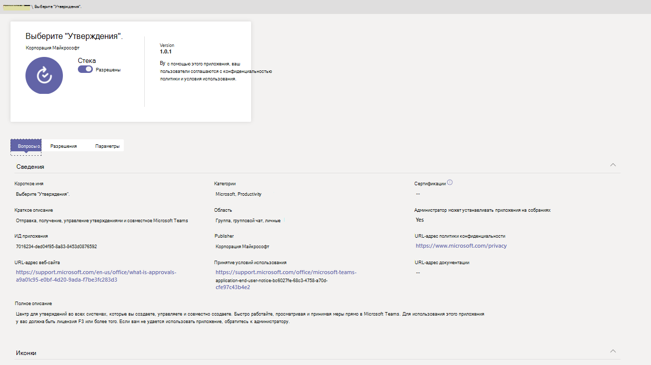 Приложение "Утверждения" доступно по умолчанию. Вы можете отключить его в Центре администрирования Teams.
