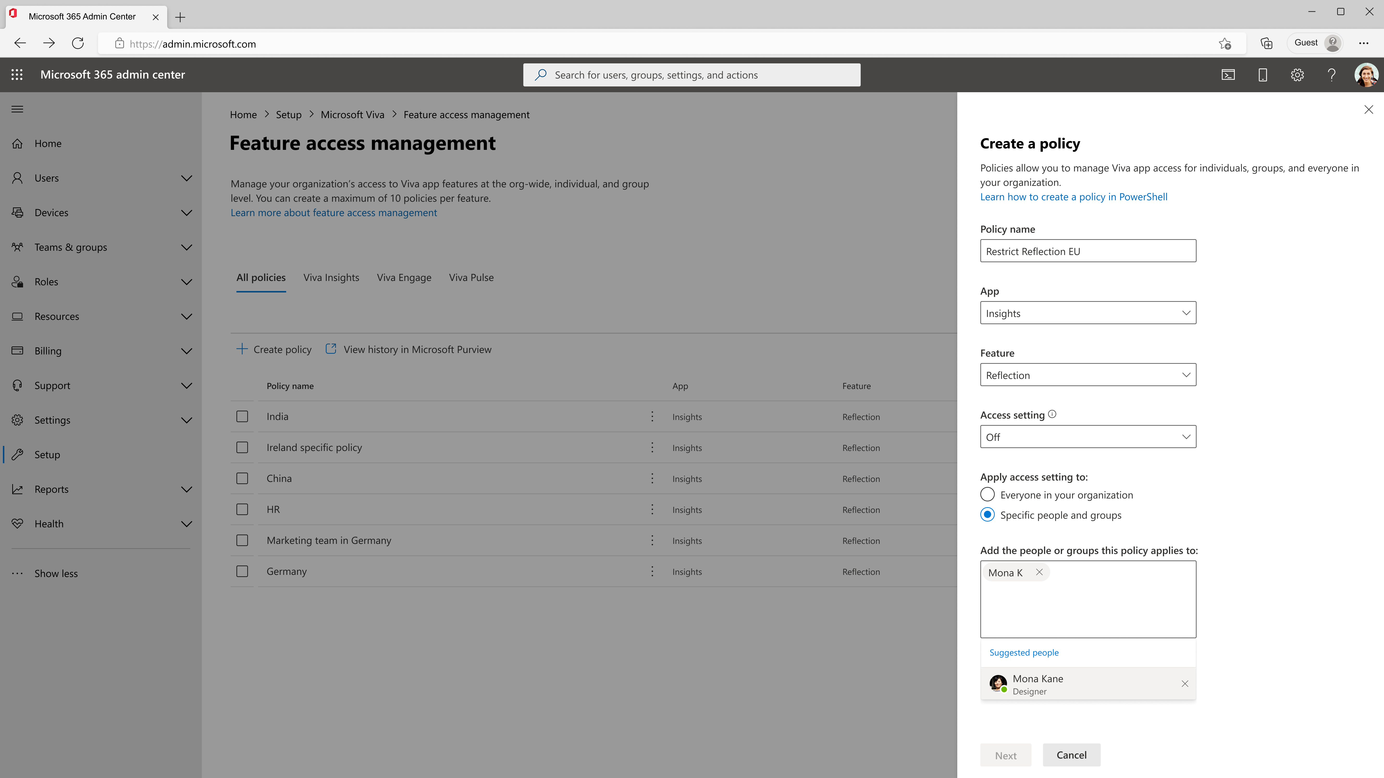 Выберите Все или Определенные люди и группы в разделе Применить параметры доступа к. Если вы не выбрали все, добавьте конкретных пользователей и группы, к которым вы хотите применить политику.