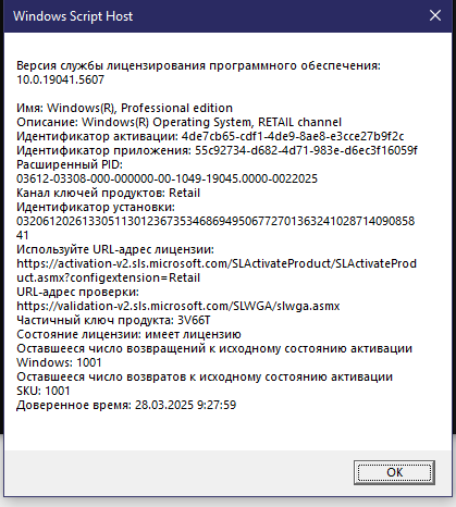 - Окна команды slmgr.vbs /dlv