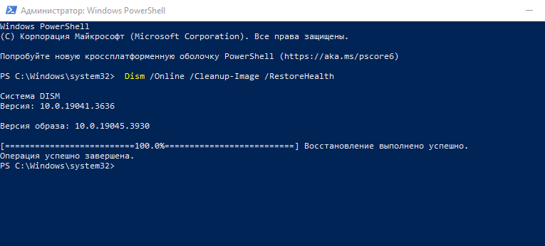 Нажмите Win+X, выберите командная строка(администратор) или PowerShell(администратор). В открывшемся окне напечатайте Dism /Online /Cleanup-Image /RestoreHealth и нажмите Enter.