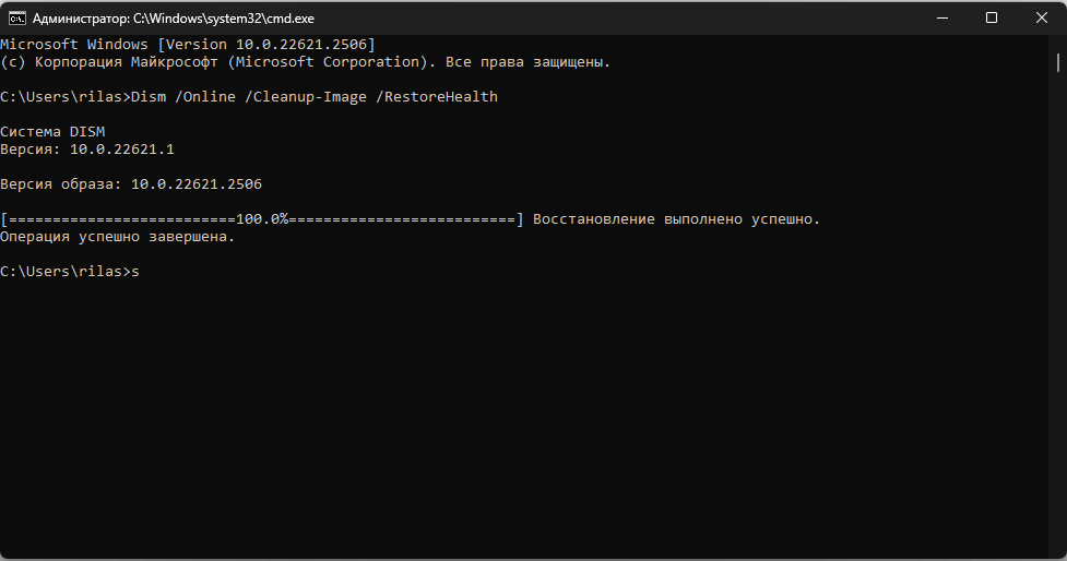 Нажмите Win+X, выберите командная строка(администратор) или PowerShell(администратор). В открывшемся окне напечатайте Dism /Online /Cleanup-Image /RestoreHealth и нажмите Enter.