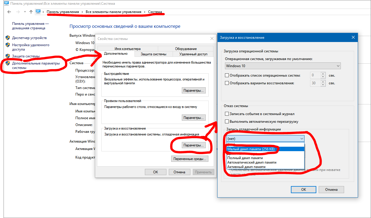 Настройте систему на получение минидампов, как на рисунке внизу. После каждого сбоя будет записан отдельный дамп в папке c:\Windows\Minidump. Когда их "накопится" 3-4 шт. - залейте файлы дампов (с расширением .DMP) на какой-нибудь файлообменник, а ссылку напишите здесь.
