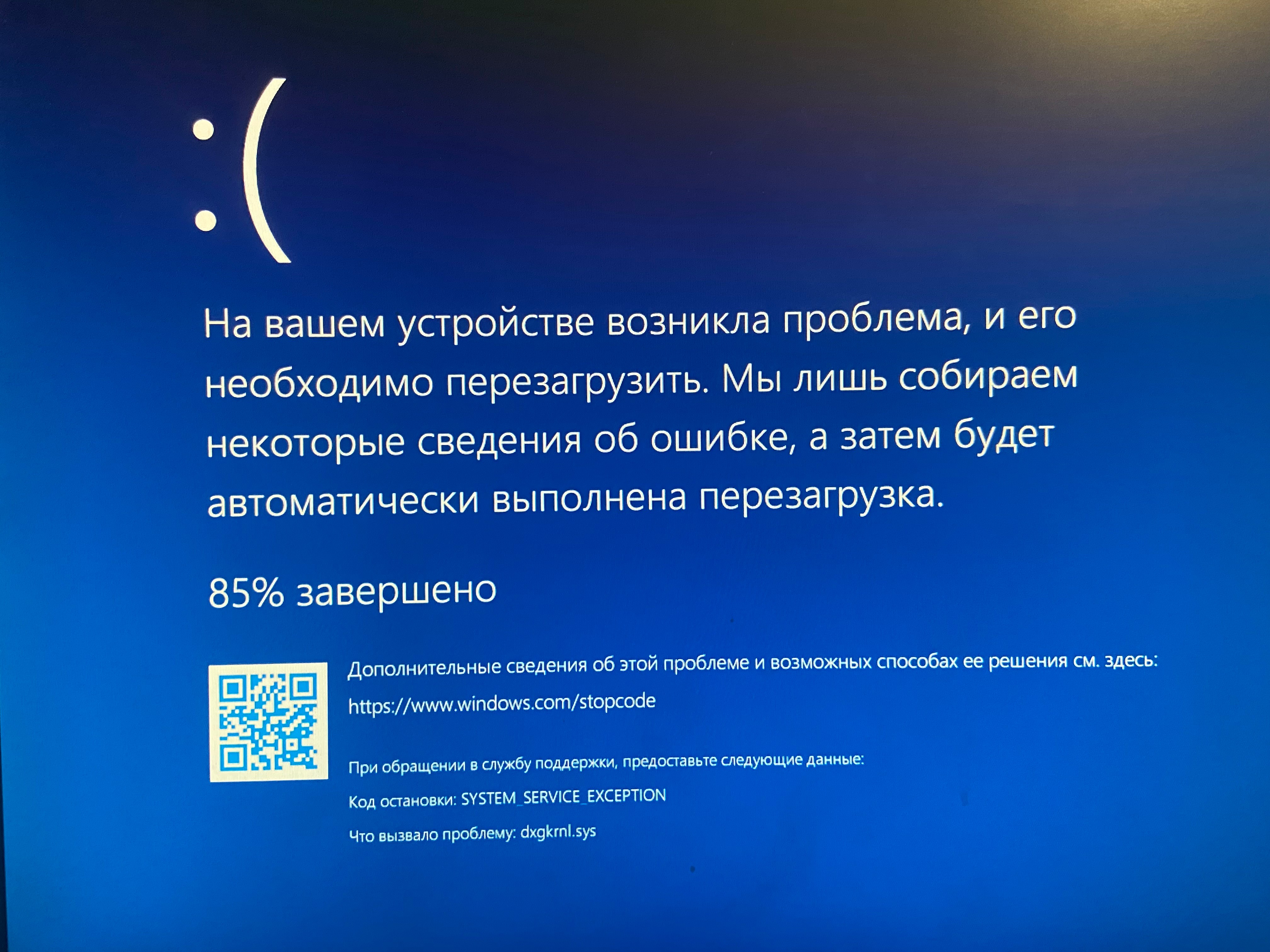 Код: 0x3B - SYSTEM_SERVICE_EXCEPTION