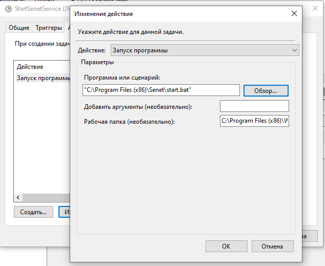 Так же пробовал запуск задания через учетную запись администратора указывая пароль, и через пользователя СИСТЕМА.