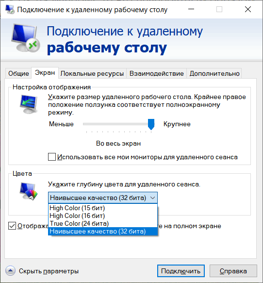 совершенно неожиданно при подключении по RDP к ПК на Windows 10 Pro невероятным образом стали искажены цвета (см. картинку). Качество соединения ни при чём, пробовал разные клиентские устройства.