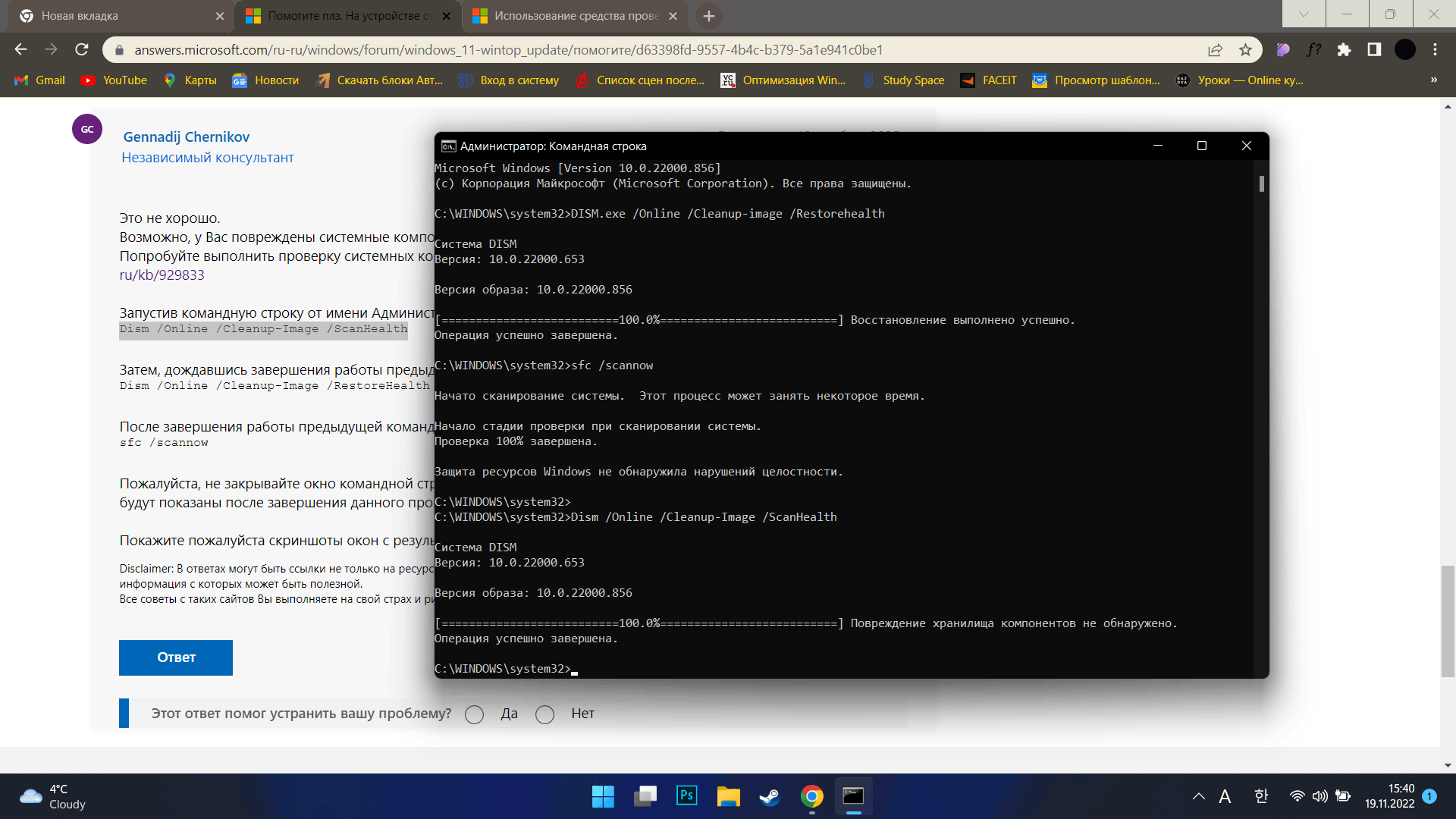 Покажите пожалуйста скриншоты окон с результатами выполнения этих команд.