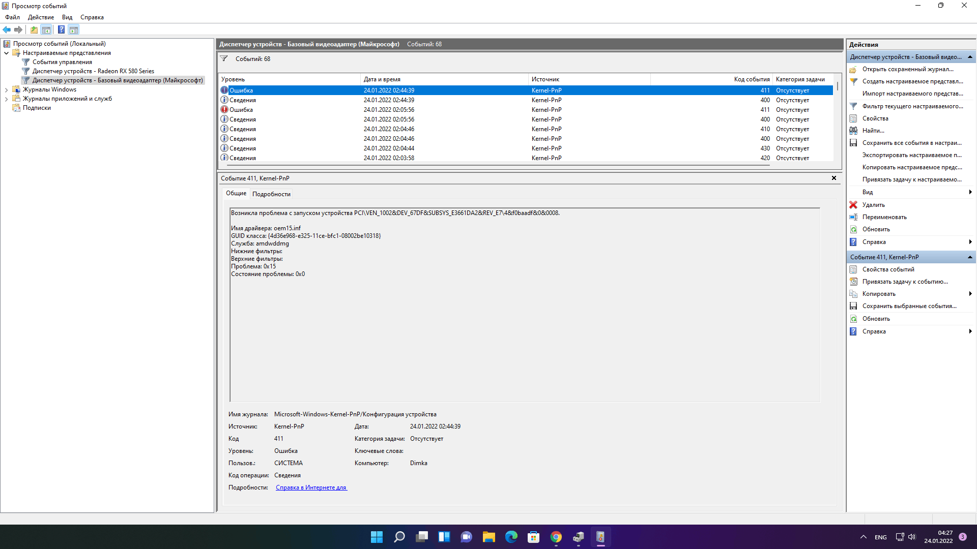 В диспетчере устройств пишет "Устройство не запущенно amdwddmg Возникла проблема с запуском устройства PCI\VEN_1002&DEV_67DF&SUBSYS_E3661DA2&REV_E7\4&f0baadf&0&0008.