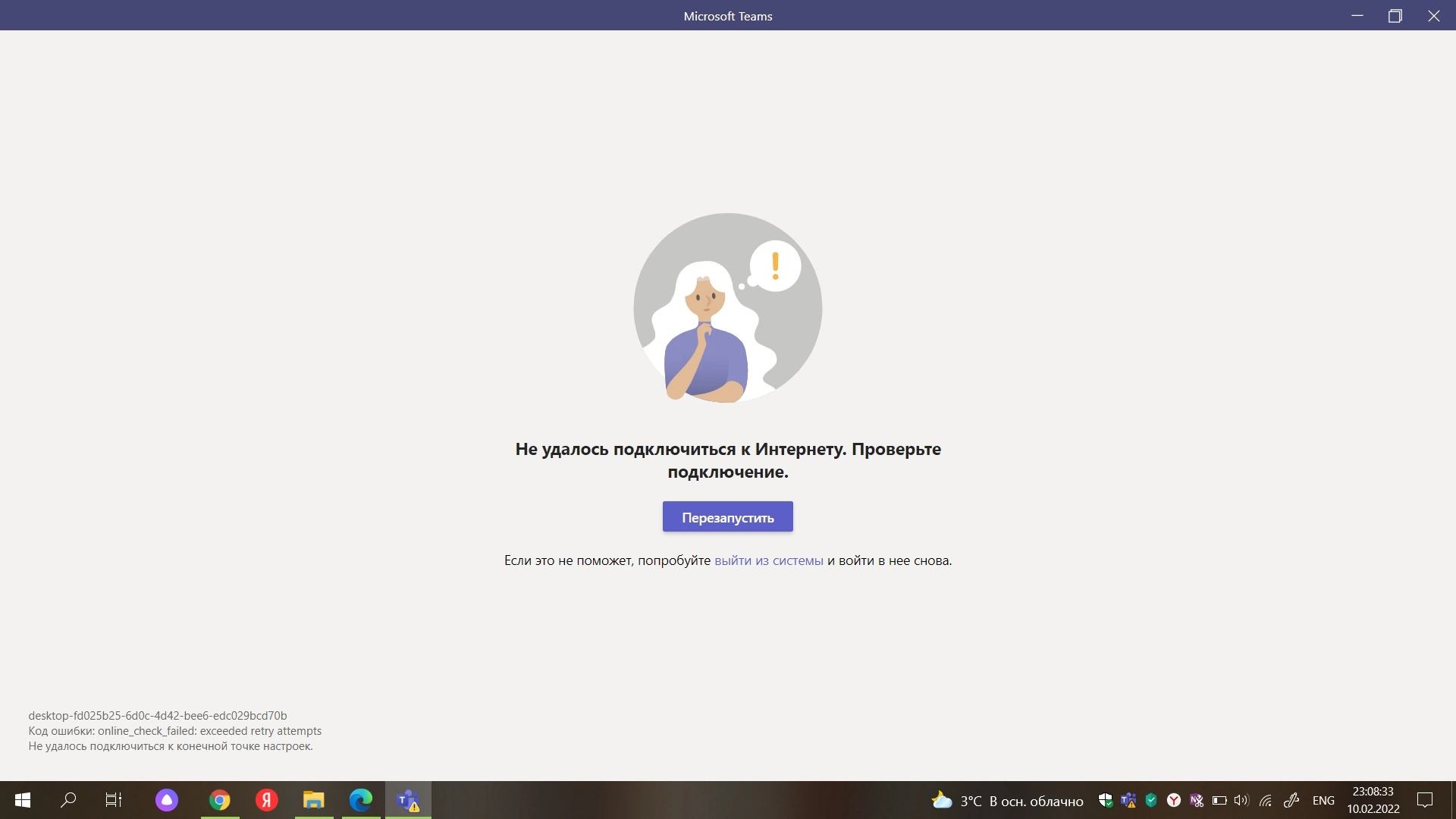 Не удается зайти в Мicrosoft Teams на ноутбуке из-за "отсутствия соединения"