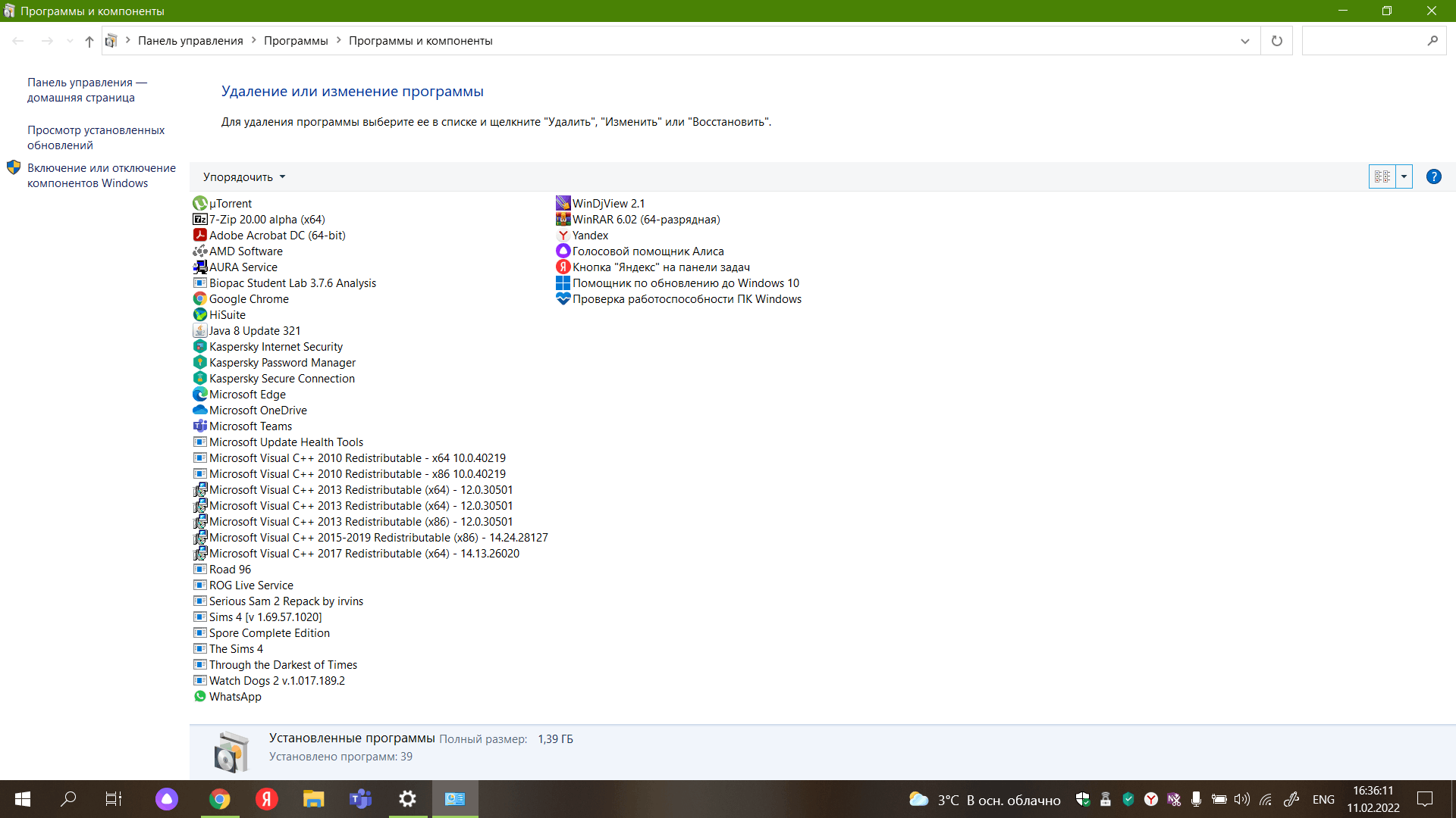 2022-02-11T12:41:39+00:00 "Касперский уже отключала и при установке, и при работе, он никак не влияет и на все файлы от Майкрософт не ругается."