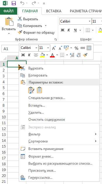 Удерживая нажатой клавишу Ctrl, запустите Excel в Безопасном режиме, щёлкните правой лапкой мышки по ячейке А1 у Вас должно открыться контекстное меню: