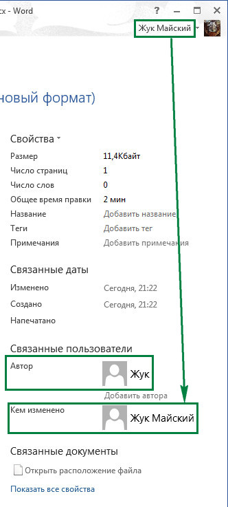 Что бы можно было изменить Автора нового создаваемого документа или "Кем изменено", необходимо что бы при создании нового документа, имя Учётной записи было записано так как это необходимо для отображения: